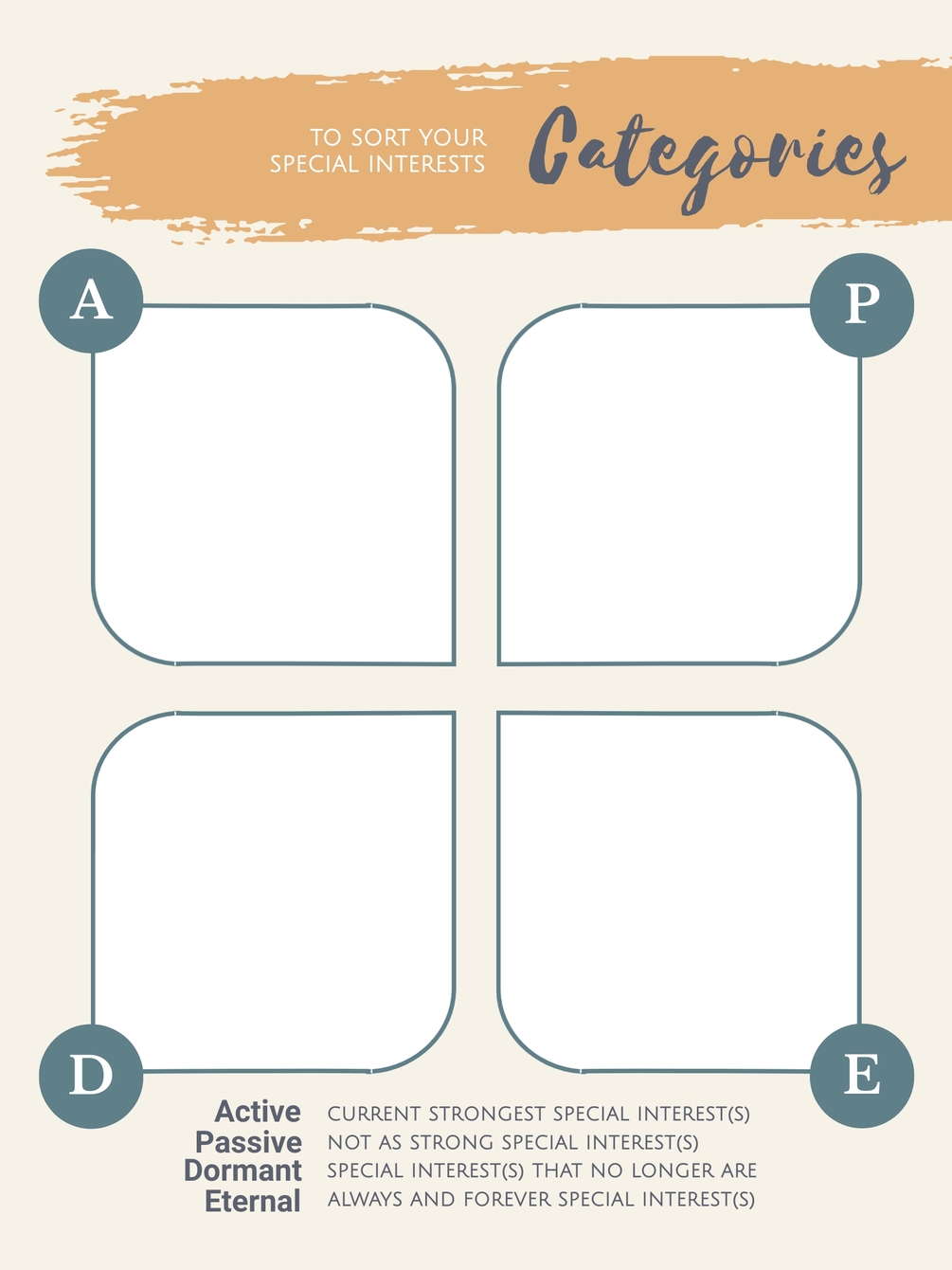 NOTE: If you are neurodivergent and consider yourself to have special interests, you are free to use this book; it is NOT limited to just autistic people! :)